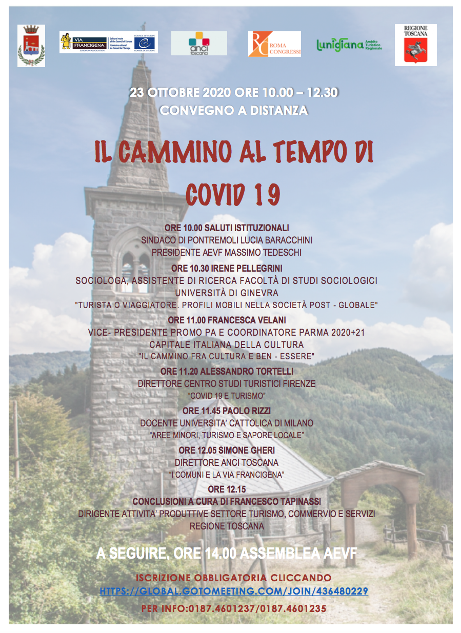 Come cambia il tema dei cammini con l’avvento dell’emergenza sanitaria: è l’argomento del convegno online “Il cammino al tempo di Covid 19” che si terrà venerdì 23 ottobre.