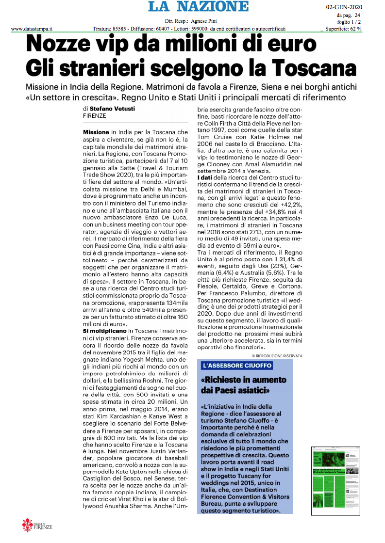 La Nazione del 2/1/2020: “Nozze vip da milioni di euro“